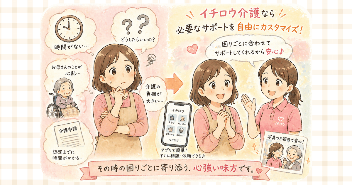 イチロウは、このような場面でも、要介護認定の前から利用できるサービスです。
